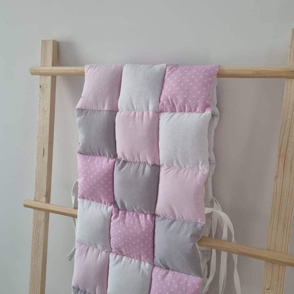 A steppelt kialakítás extra vastagságot és puhaságot biztosít, így a baba feje és teste mindig védve van az ágyrácsoktól. A 100% pamutvászon természetes tapintása kíméletes a bőrhöz, az antiallergén, szilikonizált töltet pedig gondoskodik a hosszú távú komfortérzetről. A steppelt rácsvédő rózsaszín változata tökéletesen kombinálható más pasztell színekkel, például fehérrel, bézzsel vagy szürkével, így könnyen illeszthető bármilyen babaszoba stílusához.